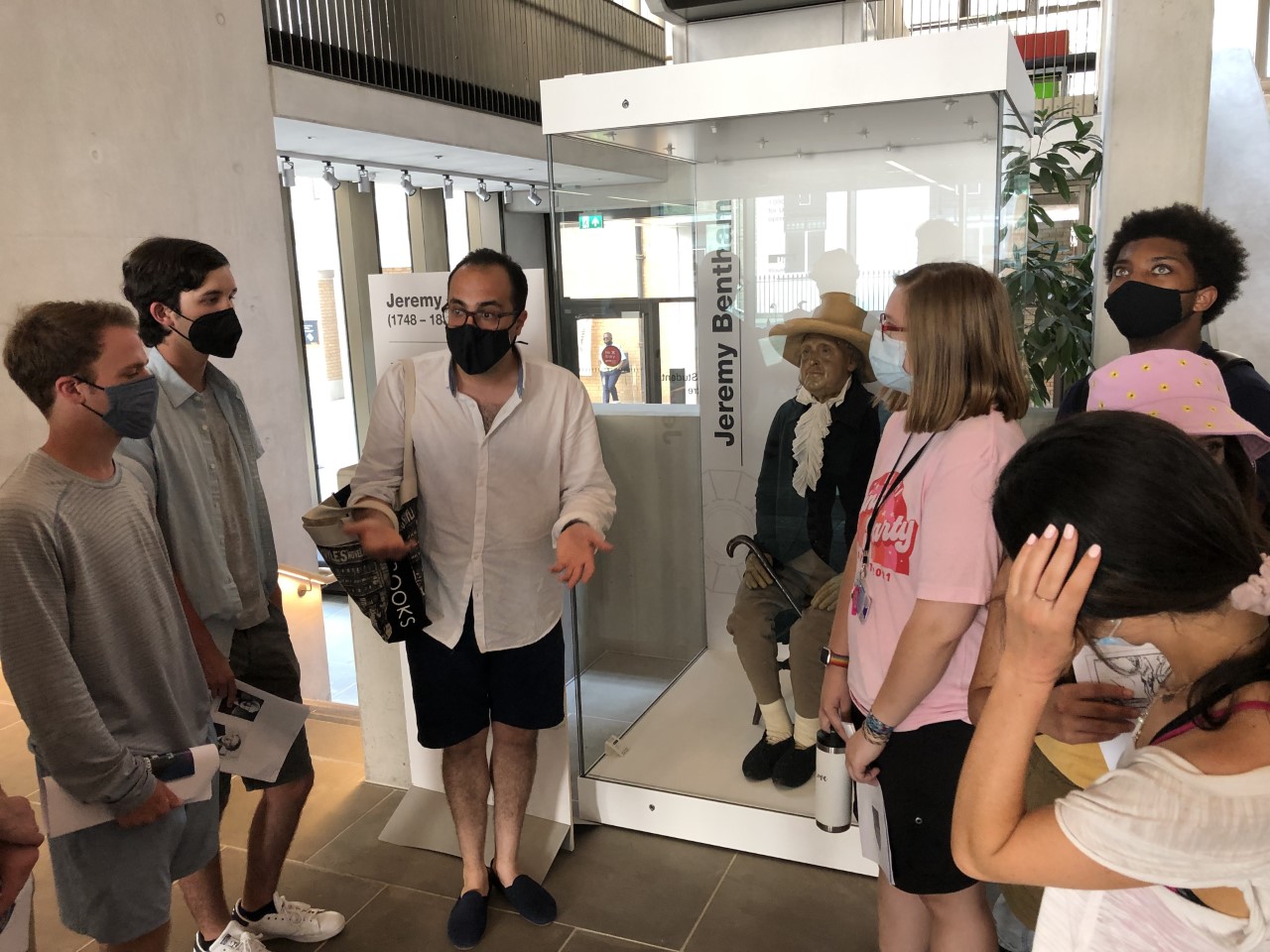 Dr. Ramin was engaging, energetic, and truly excellent. The walking tour was a masterfully crafted experience that the OU Student Group will never forget! They learned how the department’s early days were driven by scholars including Jeremy Bentham, David Ricardo, and William Stanley Jevons – and how the UCL Economics Department developed the reputation for caring about the “working man”, whereas departments at Cambridge and Oxford maintained reputations highly integrated with nobility and other social elites. Seeing the iconic Jeremy Bentham recreation in the UCL Student Center was a highlight of the tour.
