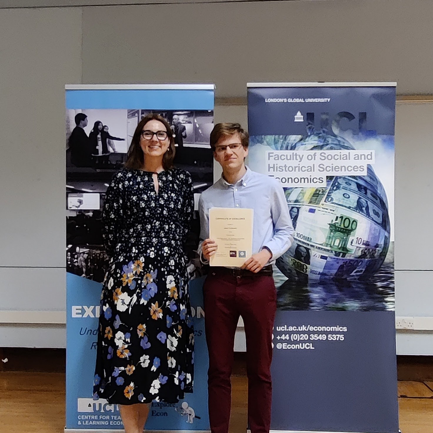 Winning the Best Research Poster Award felt amazing. I began this project because I knew so little about economics, and I wanted to learn it on my own terms and in my own way. ExploreEcon facilitates that; a student-centred event where competitors who, like me, are taking their own approach to economics, are celebrated for that. Without that connection between teaching staff and students, I feel like the course and university in general would feel a lot more cold and unwelcoming, with students not being inspired to do things their own way. I’m so grateful that UCL and CTaLE have created the polar opposite atmosphere, and winning this award at the end of the day wasn’t even the main goal. I was just happy to present what I’d done and listen to what others have done and feel inspired to do more. And I will do more – I’ve already got ideas for next year.