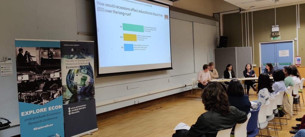 Finally, the Ignite Session on Education and Inequality saw the audience conveying to a student-staff panel their views on the issues raised using everyone’s beloved Mentimeter. Interrogators Arshiya Sawhney and Benjamin Hentschel grilled the experts: Sarah Cattan, Associate Director in Education and Skills at the IFS, and Asma Benhenda, Research Fellow at the IOE here at UCL. The issues covered were broad, including earnings gaps, labour mobility, and disruption to childhood education due to the pandemic.